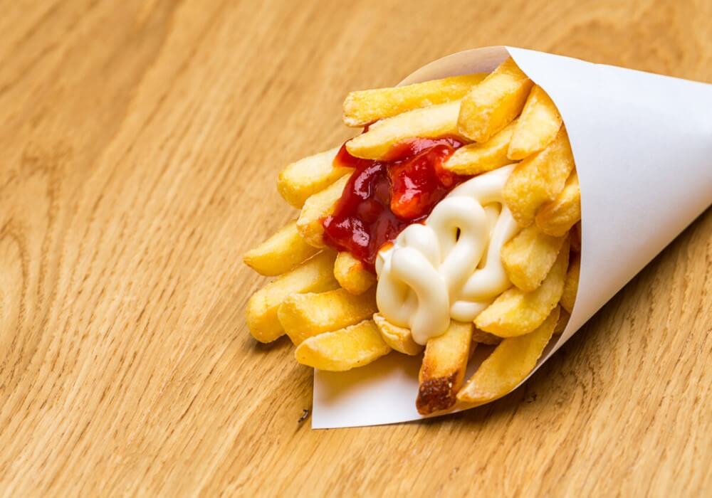 Món ăn tuy đơn giản nhưng lại phù hợp với khẩu vị của tất cả mọi người trong tour du lịch Hà Lan. Bạn tha hồ chọn sốt mình ưa thích nhất để thêm vào.